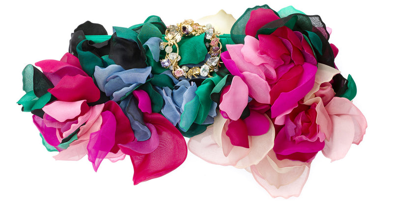 La rencontre entre Christian Lacroix et Cécile Boccara a produit une riche collaboration où l’artisanat poétique de Cécile s’est marié à l’univers flamboyant du créateur : fleurs sculptées ; cristaux étincelants, plumes et ors vont ornementer les silhouettes de théâtre et de défilés.