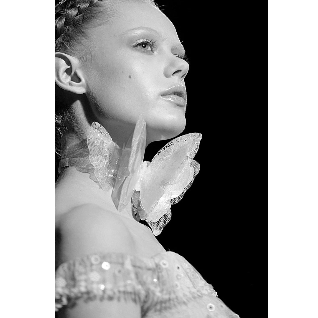 Cécile Boccara a collaboré avec la maison Valentino pour la création d’accessoires et de bijoux destinés aux défilés haute couture. Ses pièces, réalisées à la main dans son atelier parisien, ont accompagné les silhouettes de la maison italienne, renforçant l’identité de Valentino par des détails poétiques et raffinés, emblématiques de l’artisanat d’excellence.